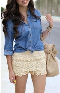 Գործվացքով զարդարված, թեթև, ամառային, ամենօրյա, մինի կիսաշրջազգեստ-շորտ