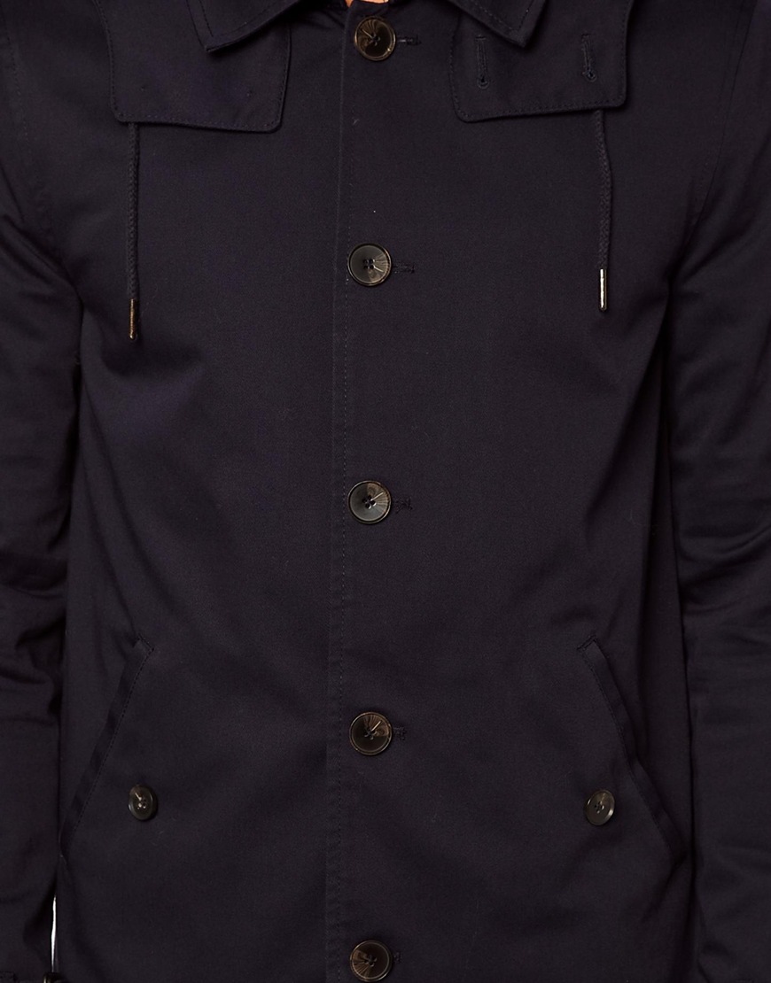 Shell: 64% Polyester, 36% Cotton, Body Lining: 68% Polyester, 32% Cotton, Sleeve Lining: 100% Polyester.