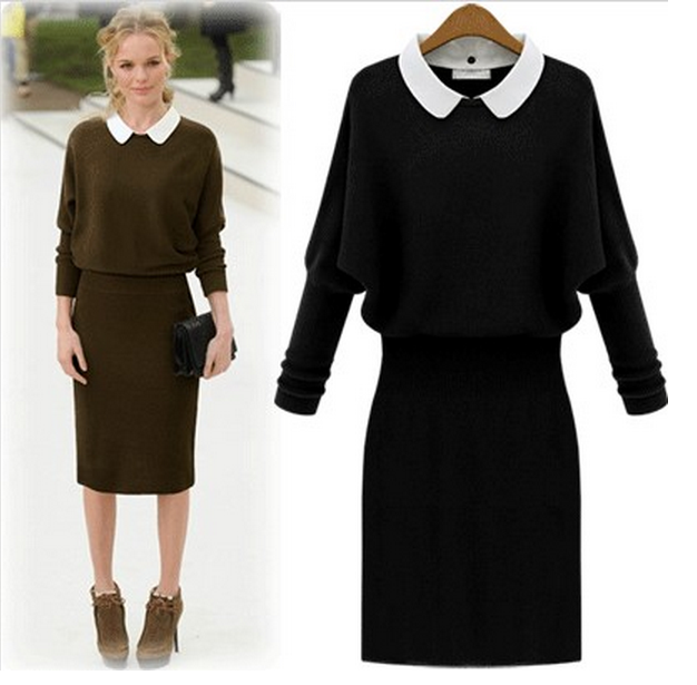 Գործվացքե, օձիքով, երկար թևերով, միջին երկարության, աշնանային շրջազգեստ