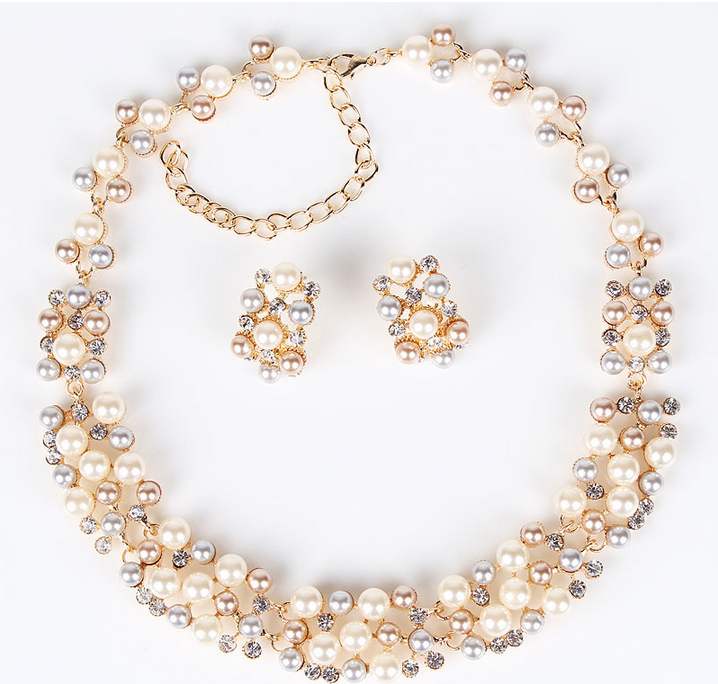Սպիտակ և մարմնագույն քարերից հյուսված նուրբ հավաքածու՝ վզնոց + ականջօղեր