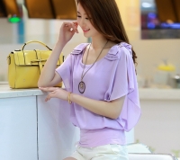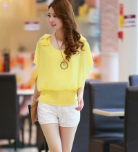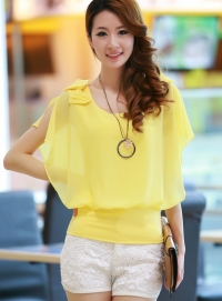 Ամառային, թեթև, շիֆոնե, հարմարավետ, ուսերի հատվածում բանտով, գայթակղիչ բլուզ: