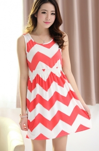 Ամառային, կարճ, թեթև, կոկտելային, կլոր վզով, հետաքրքիր գունային գամաներով շրջազգեստ: