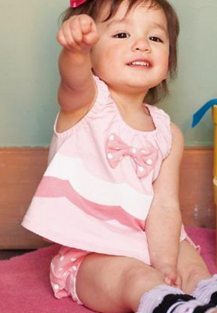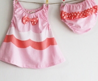 Ամառային, բամբակե, գունային գամաներով, գեզեցիկ բանտով մանկական կոմպլեկտ: