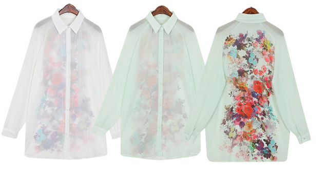 Շիֆոնե, ծաղկավոր, ամառային, ասիմետրիկ, յուրօրինակ վերնաշապիկ: