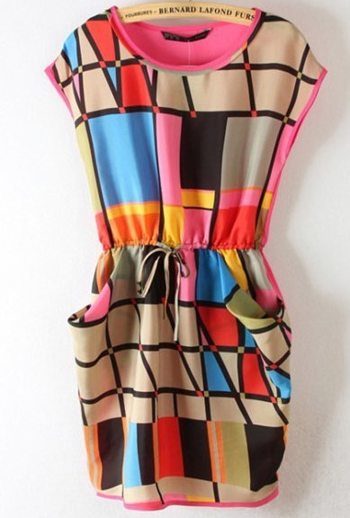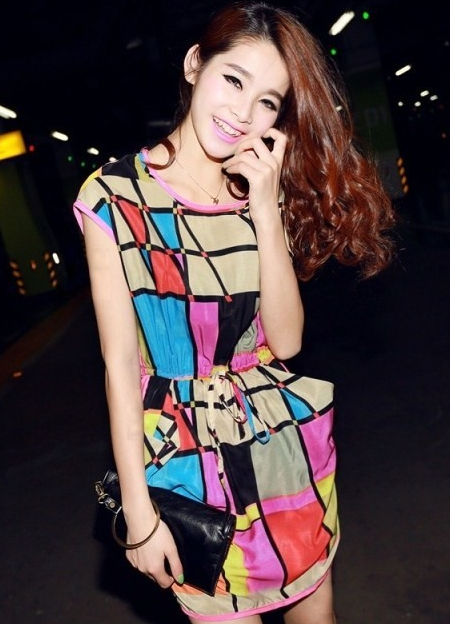 Կլոր վզով, հետաքրքիր, ամենօրյա, կարճ, ինքնատիպ գունային գամաներով շրջազգեստ: