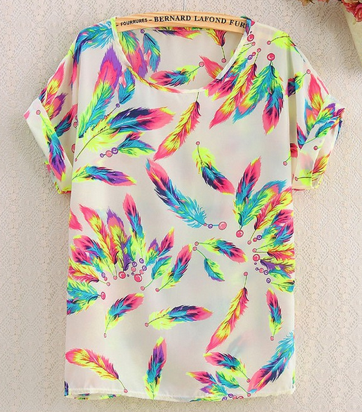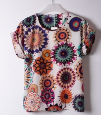 Ամառային, կանացի, վառ գույներով, հետաքրքիր նկարչական լուծումներով, կլոր վզով, կարճաթև շապիկ: Մետաքսյա նուրբ կտորը կօգնի Ձեզ թեթև անցկացնել ամառվա տապը: