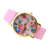 Կլոր ծաղկային նախշով, կաշվե կապիչներով ժամացույց: