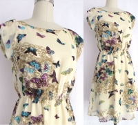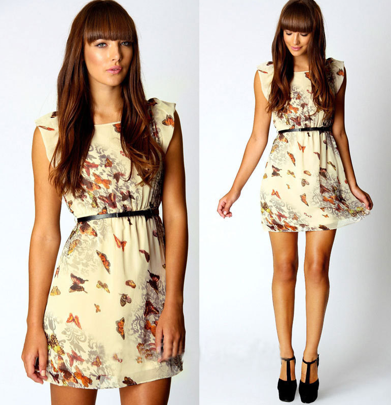 Ամառային, կարճ, կոնքային հատվածում գոտիով, թիթեռնիկների նախշով շրջազգեստ: Տարվա գունային շնչառությանը համապատասխան: Շտապեք պատվիրել այն: