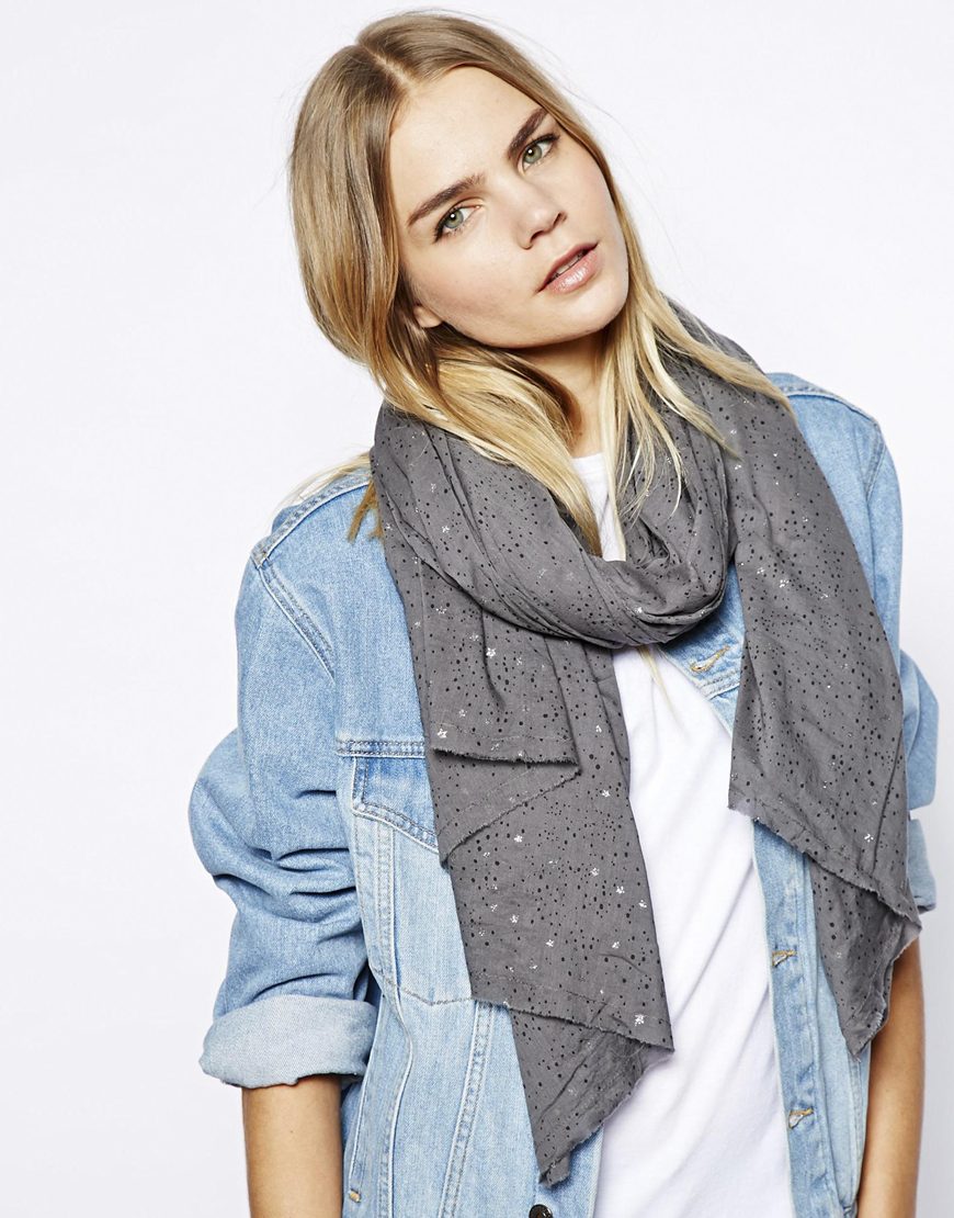 Մոխրագույն շարֆ, վրան մանր կետիկներ: