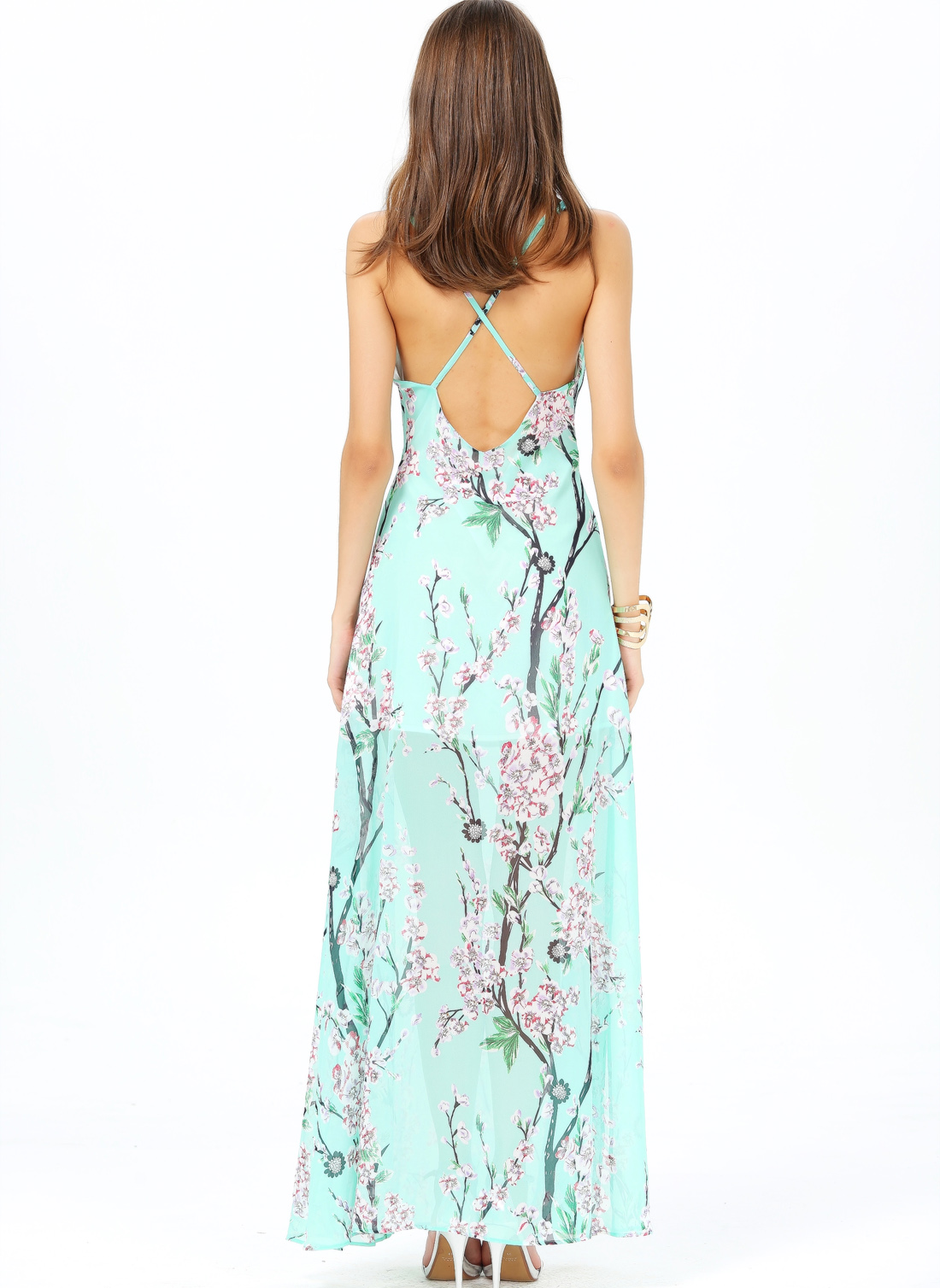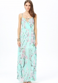 Երկար, ուսակապերով, մեջքային հատվածում խաչվող ուսակապերով, վզի սրտաձև բացվածքով, ծաղկային նախերով ամառային շրջազգեստ: