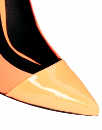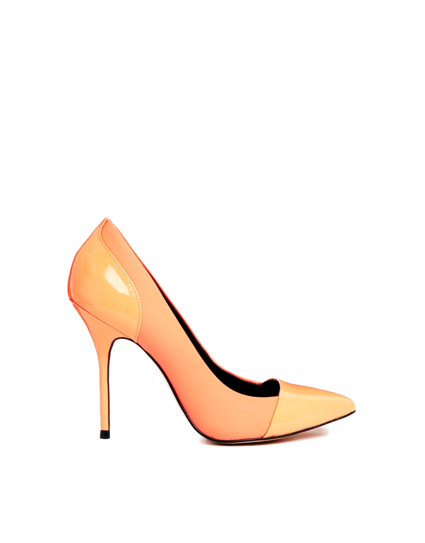 River Island ապրանքանիշի բարձրակրունկ դասկան կոշիկներ: Պատրաստված է նարնջագույն բնական կաշվից: Իսկ կրունկի և դիմացի հատվածը լաքապատ է: