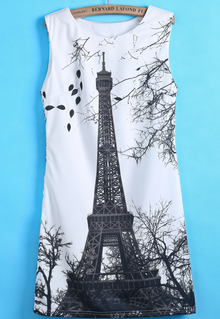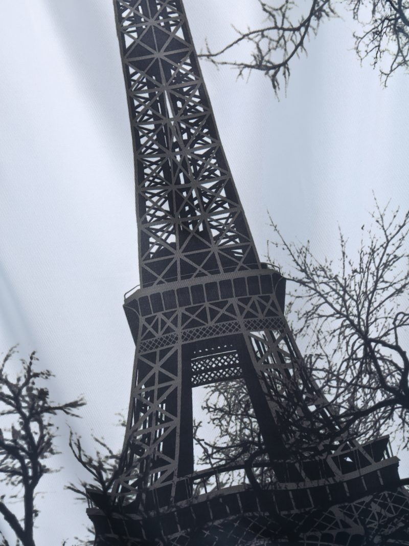 Փարիզի խորհրդանիշ էֆելյան աշտարակով, վզի կլոր և փակ բացվածքով, ամառային թեթև շապիկ: