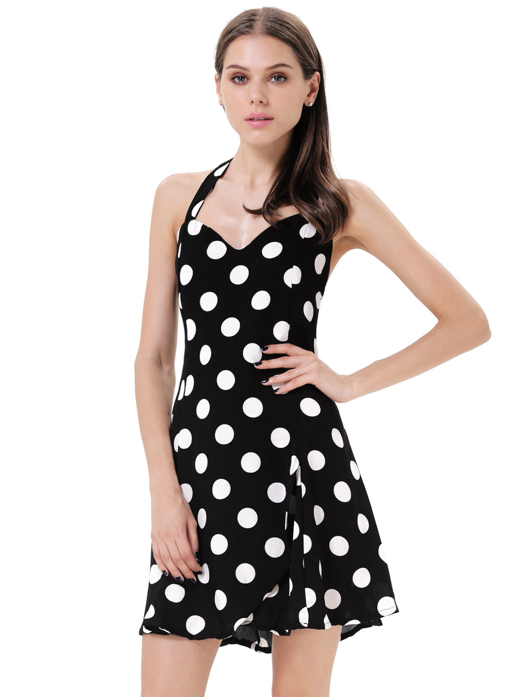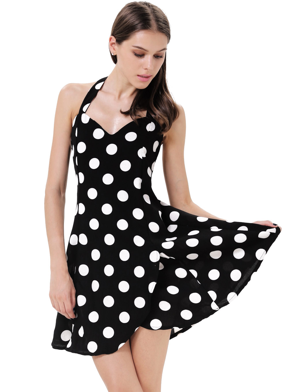 V-աձև վզի բացվածքով, կարճ, ամառային, պուտերով, ամենօրյա նուրբ շրջազգեստ: