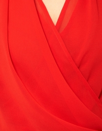 Վառ կարմիր գույն ունեցող, դասական ոճի, իրար վրա հավաքվող շիֆոնե կտորից շապիկ: