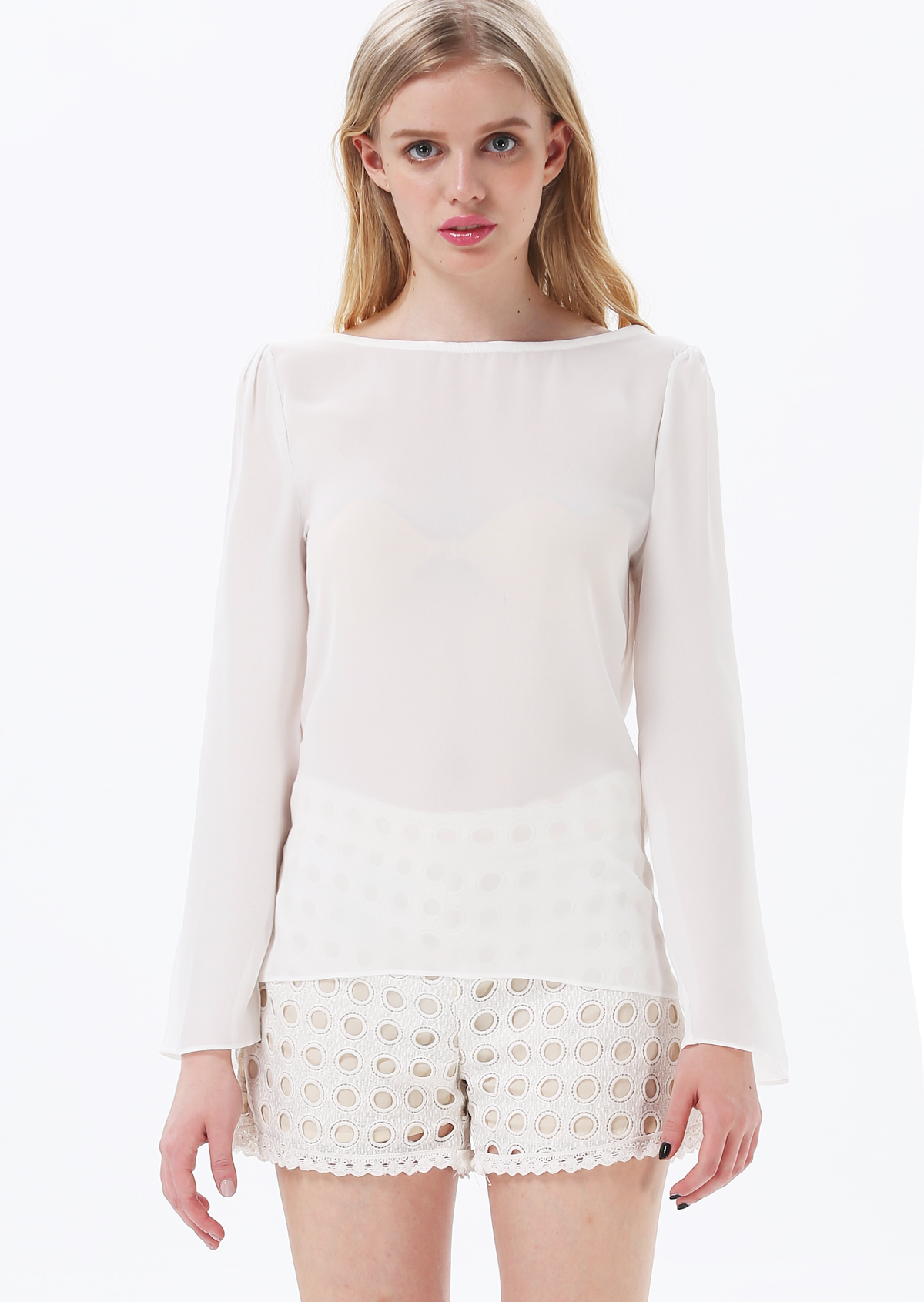 Վզի նավակ կտրվածքով, հետևի մասում իրար հատվող ուսակապերով, գեղեցիկ, յուրօրինակ շապիկ: