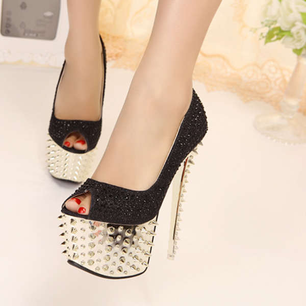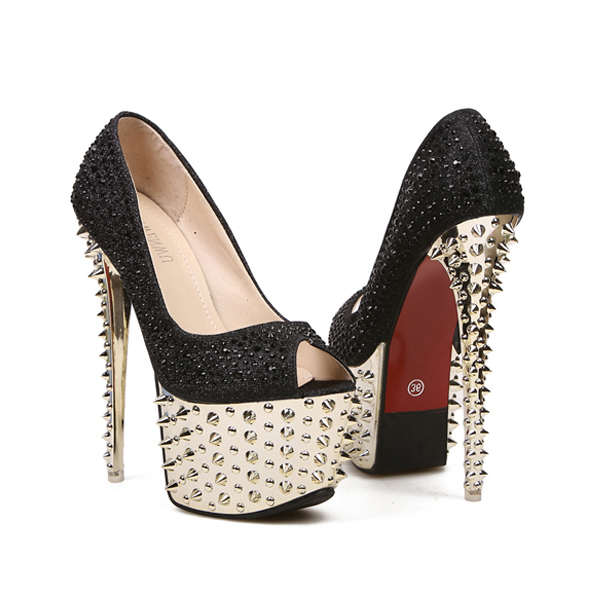 Բարձրակրունկ, առանձին պլատֆորմ, քարերից հետաքրքիր լուծումներով կոշիկ, համադրելի երեկոյան զգեստների հետ: