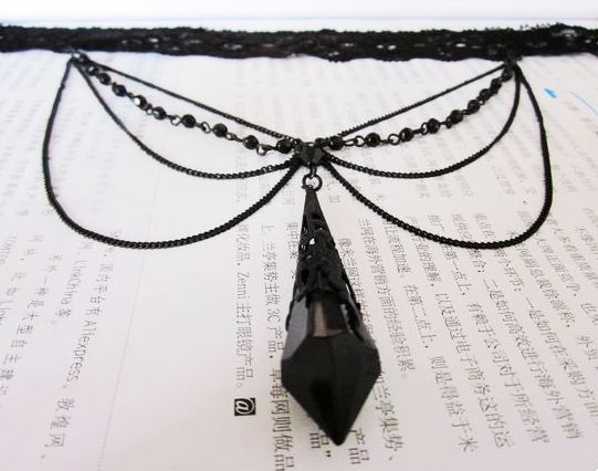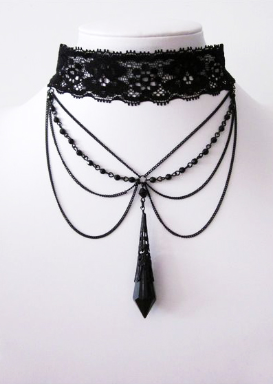 Սև մեծ քարով, շղթաներով, ժանյակավոր, գեղեցիկ վզնոց: