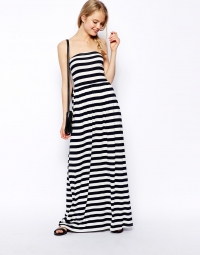 Սև և սպիտակ գծավոր, երկար, առանց ուսակապերի, հասարակ, գեղեցիկ ծովափնյա շրջազգեստ: