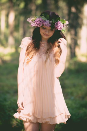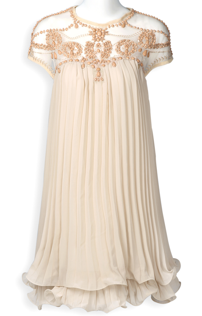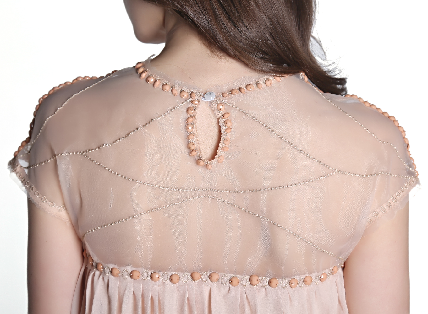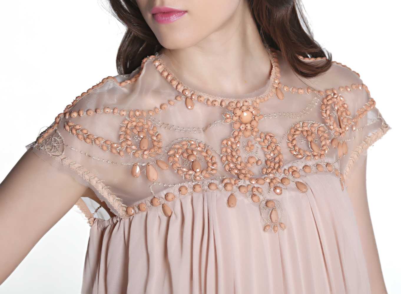 Շիֆոնե, կարճ, վզային հատվածում ցանցային կտորի վրա հուլունքազարդ նախշերով, ամենօրյա շրջազգեստ: