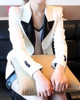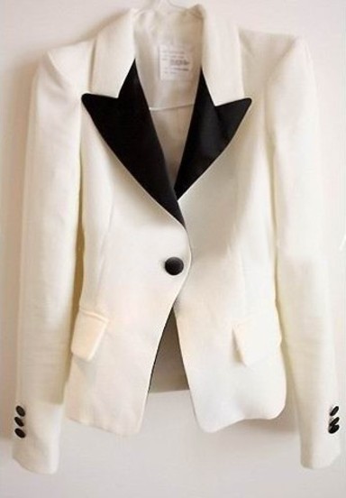 Երկարաթև, կոճակներով, դասական, երկգույն օձիքով պիջակ, նախատեսված կանանց համար: