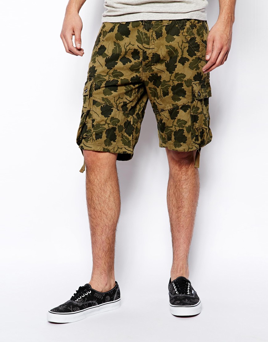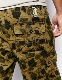 Կանաչ գույնի երանգներով ստացված տերևների նախշով, գրպաններով, առօրյա, գեղեցիկ շորտ:
