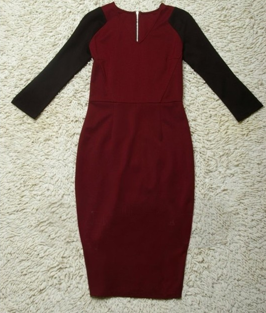 Վզի սրտաձև բացվածքով, հետևի հատվածում վերևից ներքև շղթայով, 3/4 թևերով, գործնական շրջազգեստ