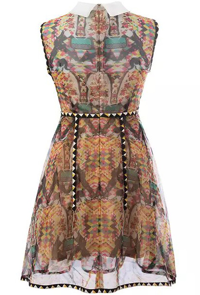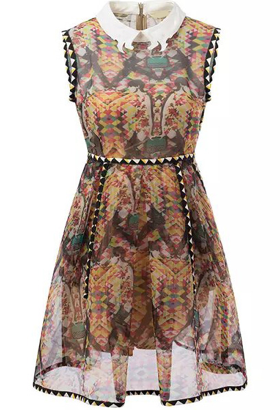 Օձիքի հետաքրքիր դիզայնով, ապստրակտ նկարով, բազմագույն, ամառային, ամենօրյա շրջազգեստ: