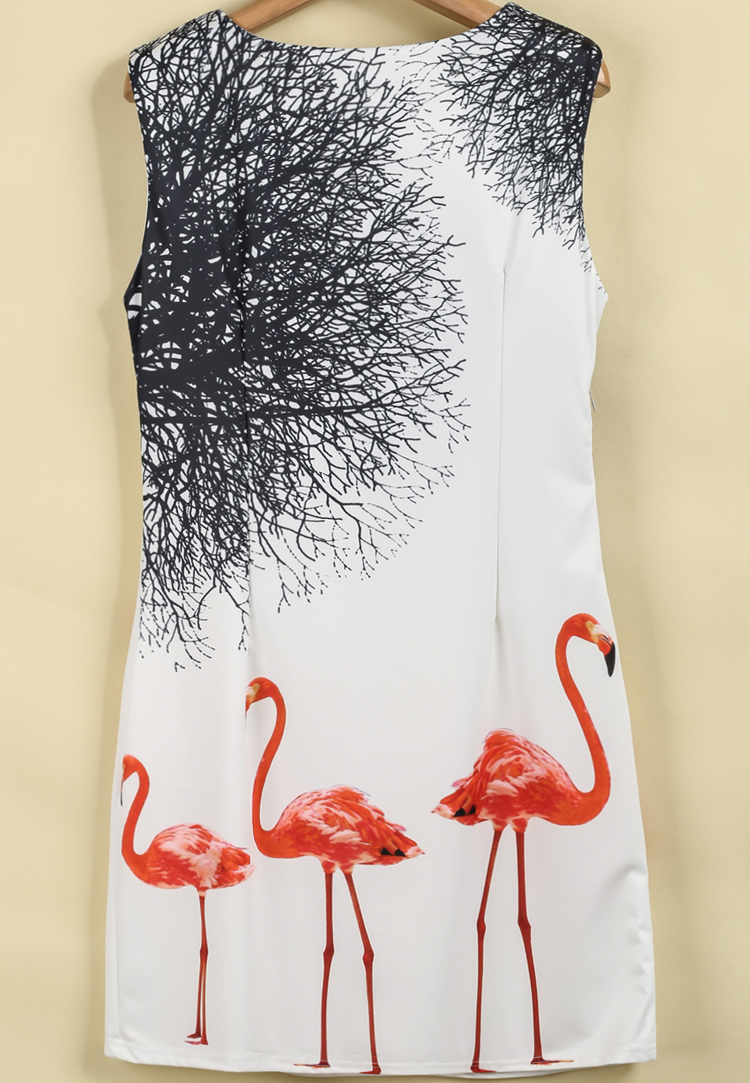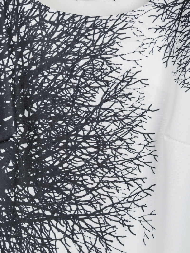 Վզի կլոր բացվածքով, անթև, ամենօրյա, արագիլի և ծառերի ճյուղերի նկարով ամառային շապիկ:
