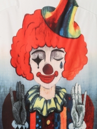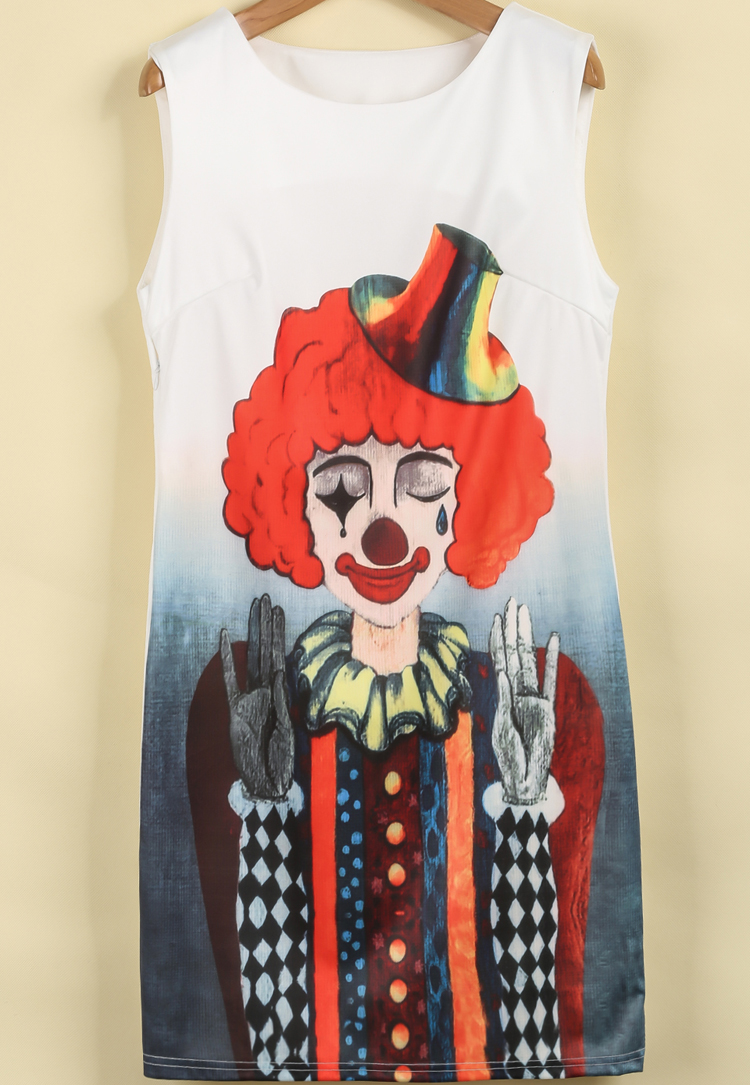 Վզի կլոր բացվածքով, անթև, ծաղրածուի նկարով, վառ գունավորում ունեցող շապիկ: