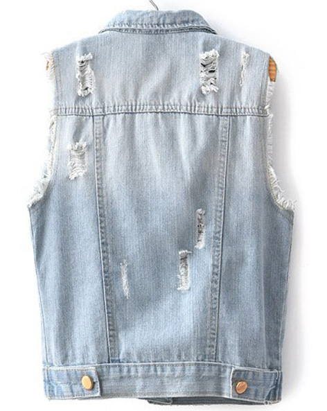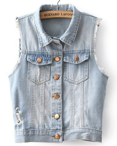 Գրպաններով, ազատ ոճի, նորաձև ջինսե ժիլետ: