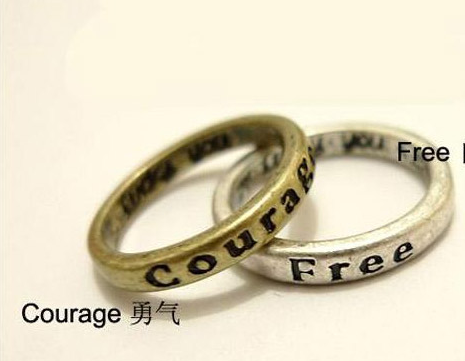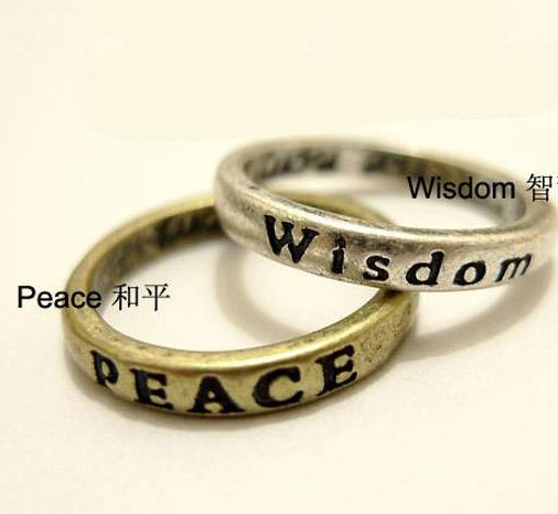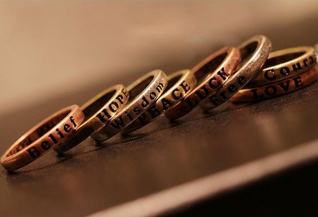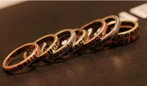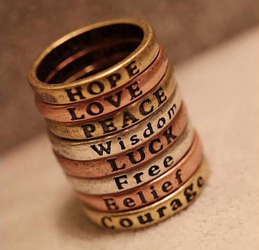 Hope, love, peace, wisdom, luck, free,belief, courage գրվածքենորվ, կլոր, նեղ մատանիների հավաքածու: