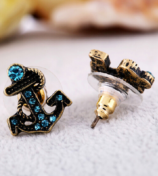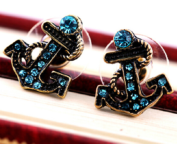 Խարիսխի տեսք ունեցող, կապույտ քարերով, փոքր չափի գեղեցիկ օղեր: