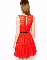 Վզի սրտաձև բացվածքով, մեջքային հատվածի հետաքրքիր դիզայնով, գոտկային հատվածում բարակ կաշվե գոտիով, կիսաշրջազգեստի հատվածում դարսերով, կարճ, ամենօրյա շրջազգեստ: