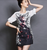 Վզի կլոր բացվածքով, վայրի նկարնորով, կարճ, գրավիչ շրջազգեստ: