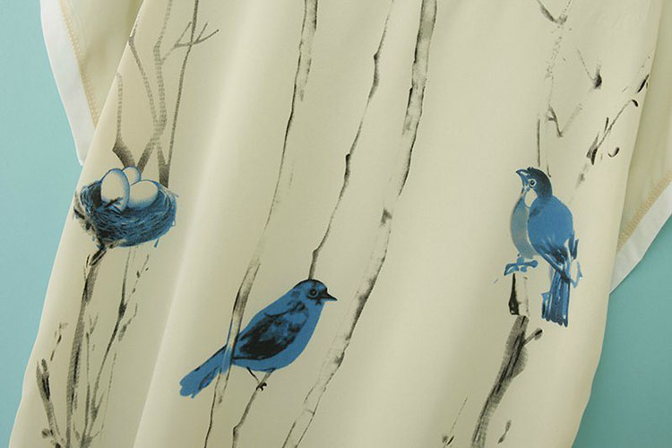 Վզի կլոր բացվածքքվ, կիսաթև, ծիծեռնակների նախշով, ամառային, շիֆոնե շապիկ: