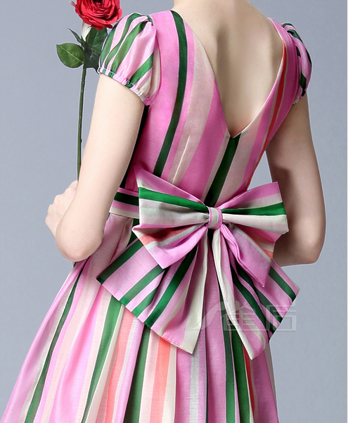 Վզի կլոր բացվածքով, կիսաթև, մեջքային հատվածում սրտաձև բացվածքով, ժապավոնով, որը հնարավորություն է տասլիս ստանալ մեծ բանտ, բազմերանգ, գեղեցիկ շրջազգեստ: