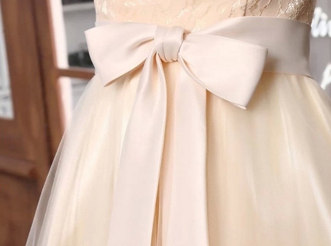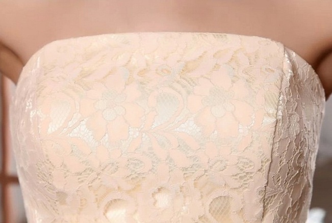 Առանց ուսակապերի, կրծքավանդակից մինչև գոտկային հատվածը ժանյակավոր, գոտկային հատվածում գոտիով, գեղեցիկ կոկտելային շրջազգեստ: