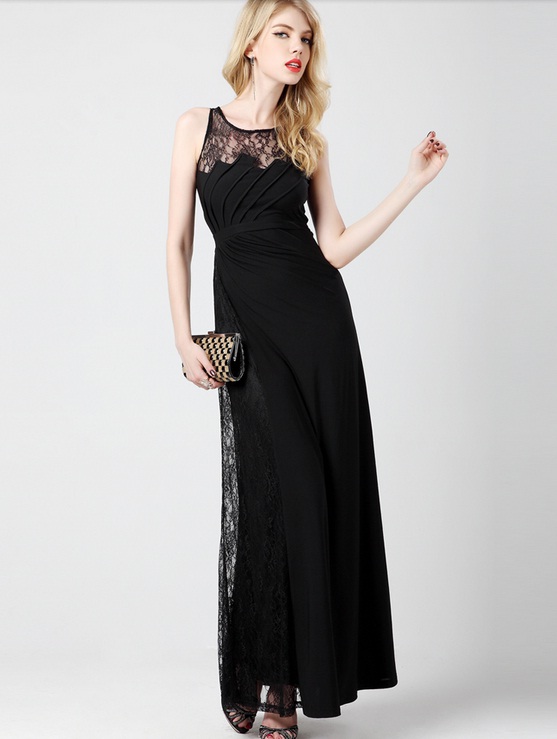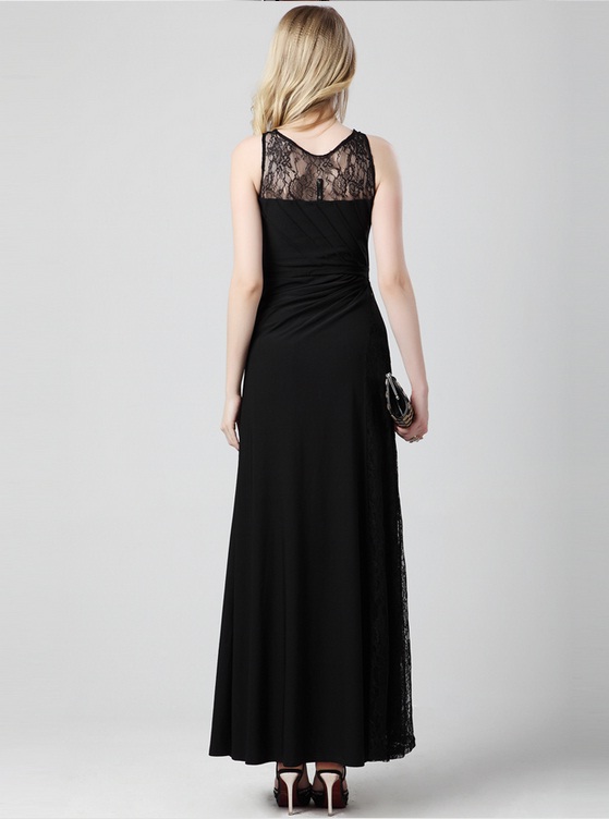 Վզի կլոր բացվածքով, անթև, վզային և կողքային հատվածում ժանյակավոր, էլեգանտ, գրավիչ, երեկոյան շրջազգեստ: