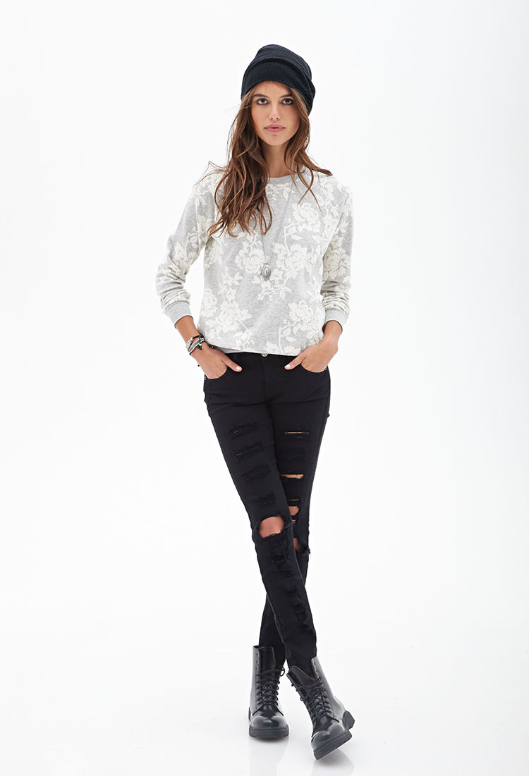 Վզի կլոր բացվածքով, երկարաթև, թևերի և վզային հատվածում էլաստիկ, մոխրագույնի վրա սպիտակ վարդերի նախշով, թեթև բլուզ: