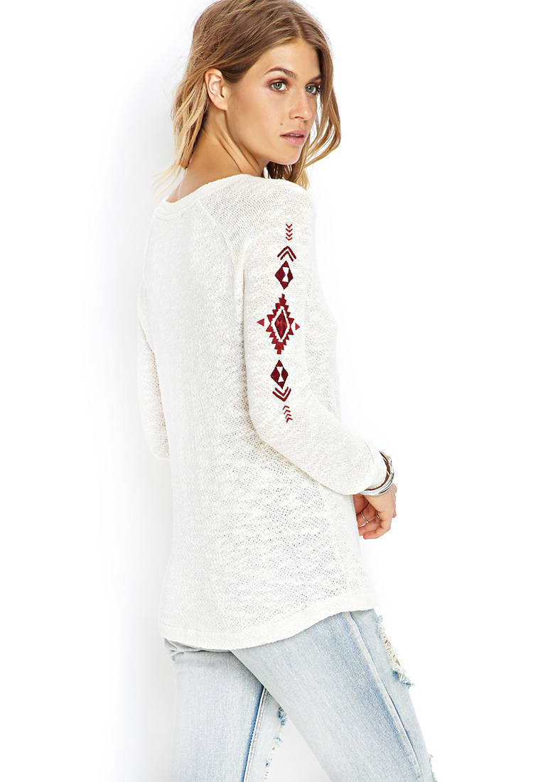 Վզի կլոր բացվածքով, երկարաթև, թևերի վրա և առաջամասում էթնիկ նախշերով, թեթև, բարակ բլուզ: