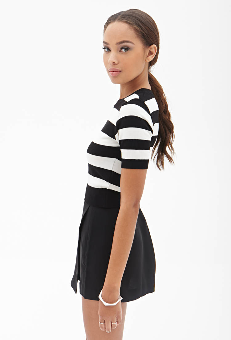Կարճաթև, մինչև կոնքերը երկարությամբ, սև և սպիտակ գծերով, թեթև բլուզ: