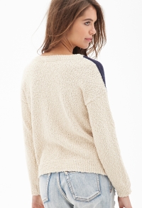 Վզի կլոր բացվածքով, երկարաթև, առաջամասում բրիտանական դրոշով, շյուղագործ, նորաձև բլուզ: