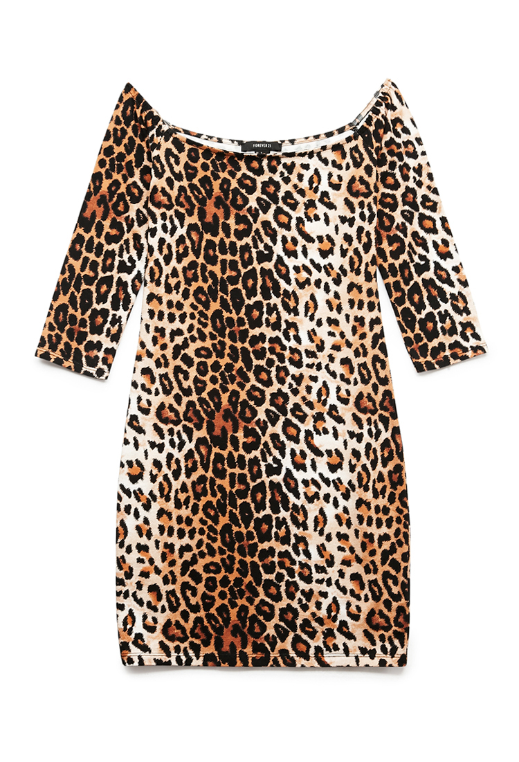 Առանց վզի, լայնակի բացվածքով, 3/4 թևերով, մինի, ամբողջությամբ վագրային նախշով, ամենօրյա թեթև շրջազգեստ: