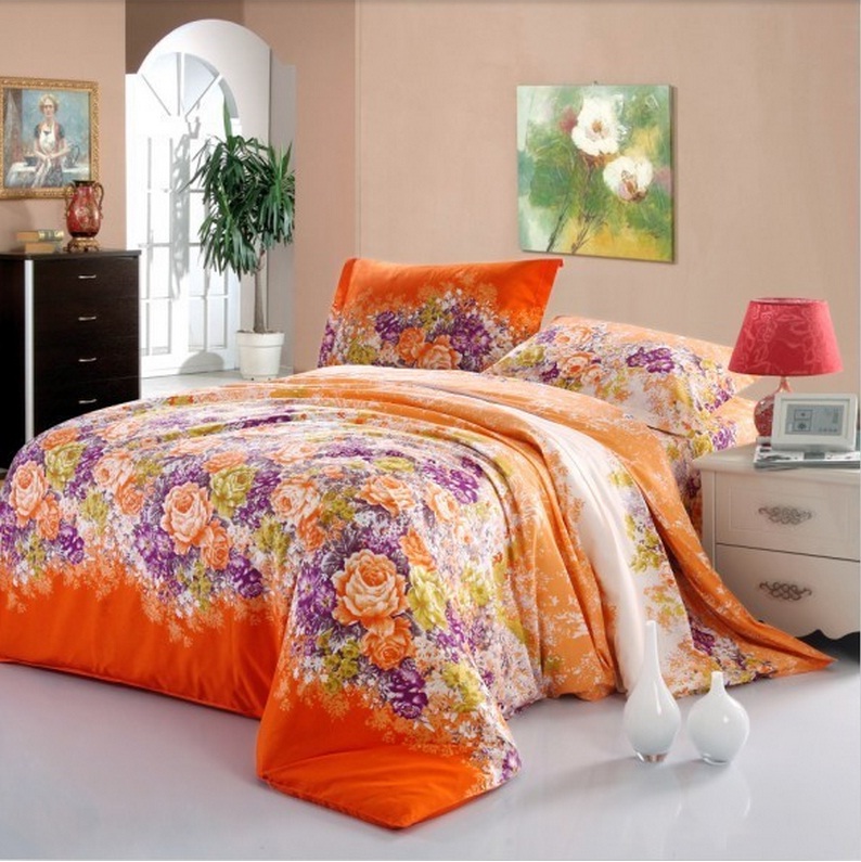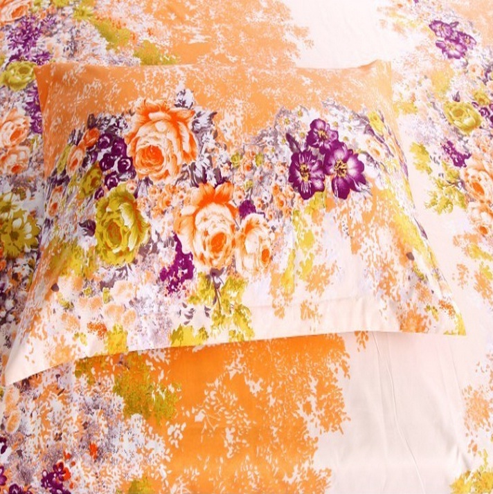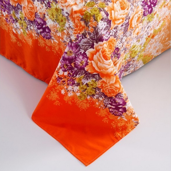 100% պոլիեսթերից կարված, վառ նարնջագույն ֆոնով, ծաղիկների նախշով, բարձր տրամադրություն հաղորդող սպիտակեղեն:
