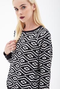Վզի կլոր բացվածքով, երկարաթև, սևի և սպիտակի համադրությամբ գեղեցիկ նախշերով, ամենօրյա բլուզ: