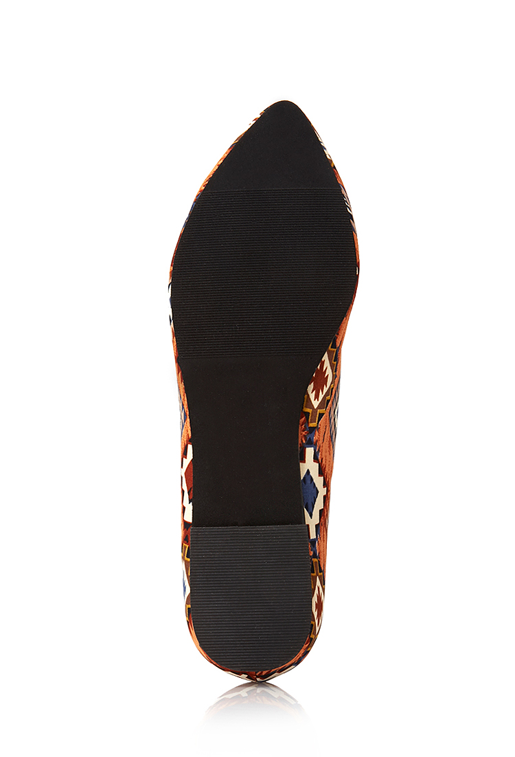 Սուր քթածայրով, ամբողջությամբ գորգային նախշերով, նորաձև, առօրյա կոշիկ:
