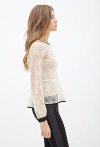 Վզի կլոր բացվածքով. երկարաթև, վզի, թևերի և ներքևի հատվածում եզերված սև բարակ կտորե գործվածքով, գրավիչ, թեթև, ցանցային բլուզ:
