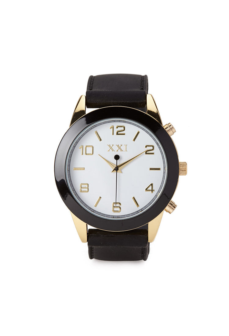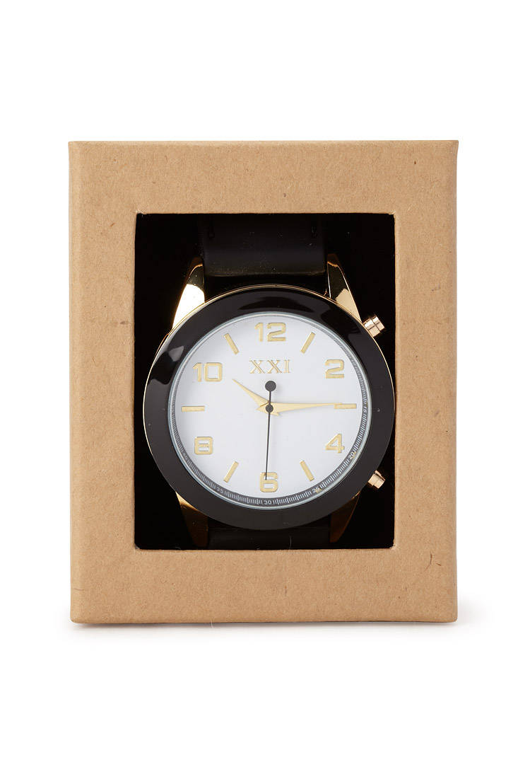 Ամբողջությամբ սև, ոսկեգույն եզրերով, ոսկեգույն թվերով, նորաձև ժամացույց:
