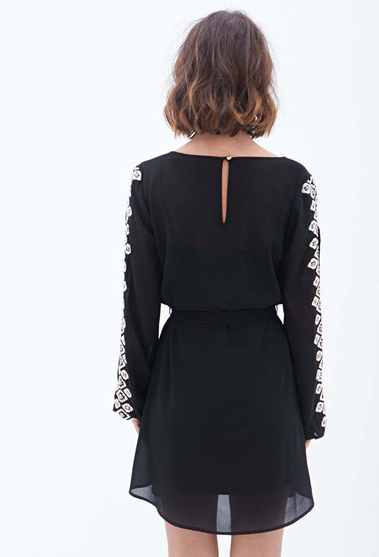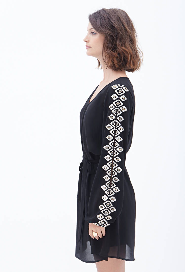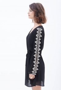 Վզի սրտաձև բացվածքով, երկարաթև,կոնքային հատվածում գոտիով, ասեղնագործ թևերով, ամենօրյա, թեթև շրջազգեստ: