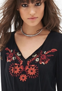 Վզի սրտաձև բացվածքով և կապիչներով, վզային հատվածում հետաքրքիր նախշերով, երկարաթև, գոտկային հատվածում էլաստիկ, գեղեցիկ, թեթև, ամենօրյա շրջազգեստ:
